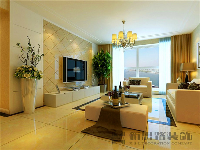 客廳:電視背景墻運用大理石上墻,外擺放植物,電視柜等裝飾,使電視背景墻既不復雜而簡潔大方。