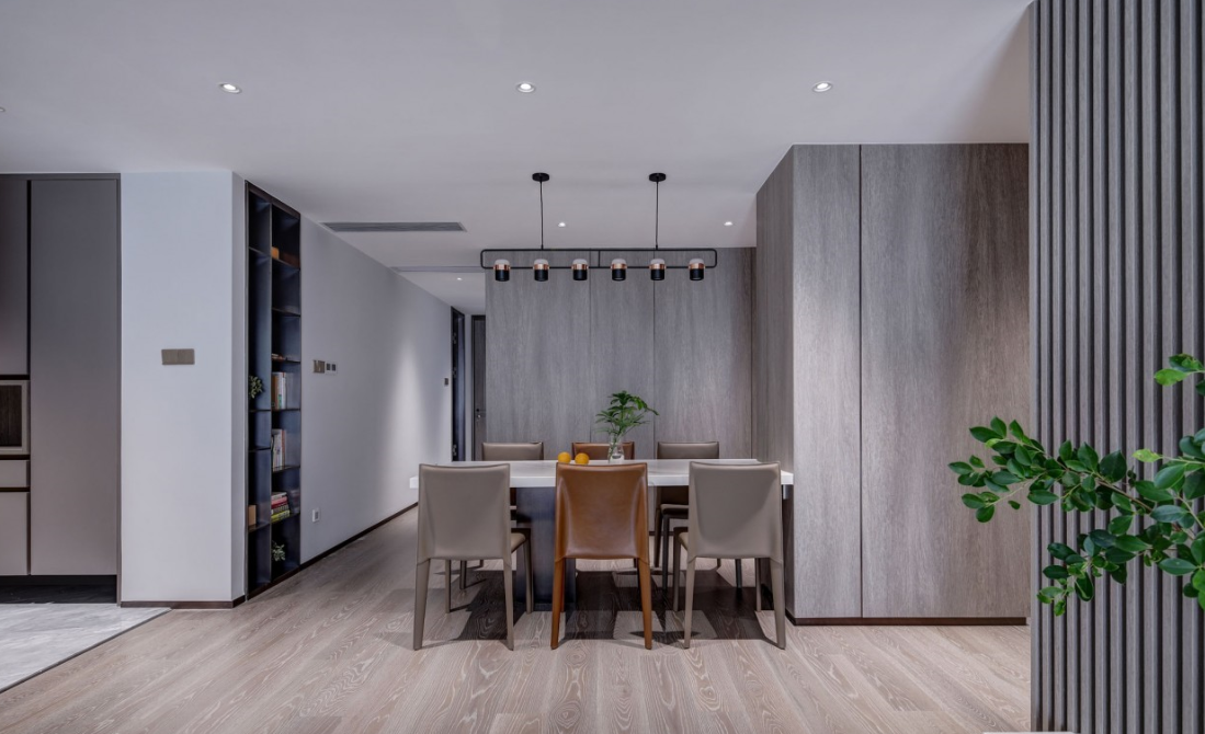 餐廳承重柱是不少人會(huì)選擇回避的設(shè)計(jì)難點(diǎn)設(shè)計(jì)師獨(dú)出心裁,將大理石桌面嵌入其內(nèi)遠(yuǎn)遠(yuǎn)望去,白色餐桌宛若浮空、靈動(dòng)而輕盈同時(shí)完美消解了承重柱礙眼的視覺(jué)效果