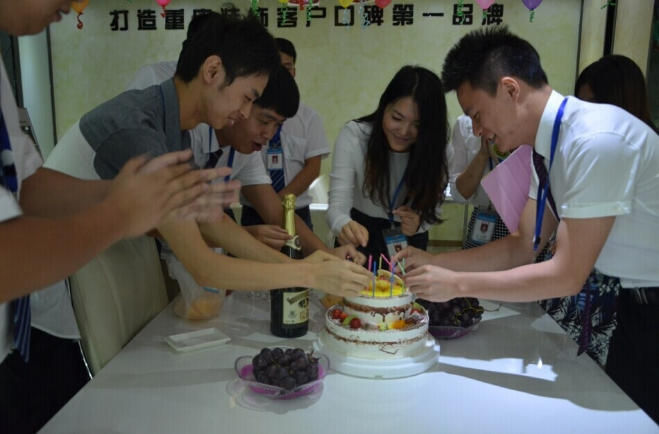 隨后,在“祝你生日快樂”的美妙歌聲和熱烈掌聲中,李總同家人們一起打開香檳,切開新思路十一周歲的生日蛋糕,共同祝福新思路十一周歲生日快樂。喝著芬香醉人的香檳,品嘗著香甜可口的蛋糕,在場的每個(gè)人臉上都洋溢著開心的笑容。大家頻頻舉杯,談笑風(fēng)生,豪情滿懷,憶崢嶸,品喜悅,慶典現(xiàn)場成了一片歡樂的海洋。當(dāng)然在慶祝之余,我們也把蛋糕和香檳送到正在現(xiàn)場談單的客戶手中,也讓他們一起分享這種幸福和喜悅。新思路的今天,離不開管理者的智慧領(lǐng)航,也離不開每一位新思路家人的執(zhí)著付出,更離不開廣大客戶十一年來的精心呵護(hù)與大力支持,感謝每一位可愛的客戶!