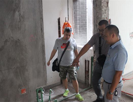 業(yè)主、設(shè)計師、項目經(jīng)理三方商討廚房水管改造方案