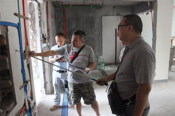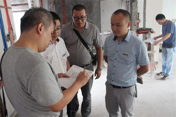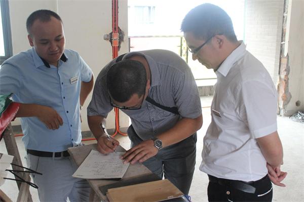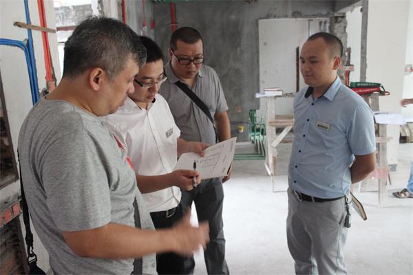質(zhì)檢正在向馬老師介紹公司水電驗收標(biāo)準(zhǔn)