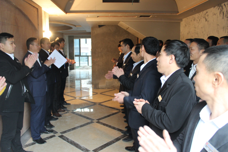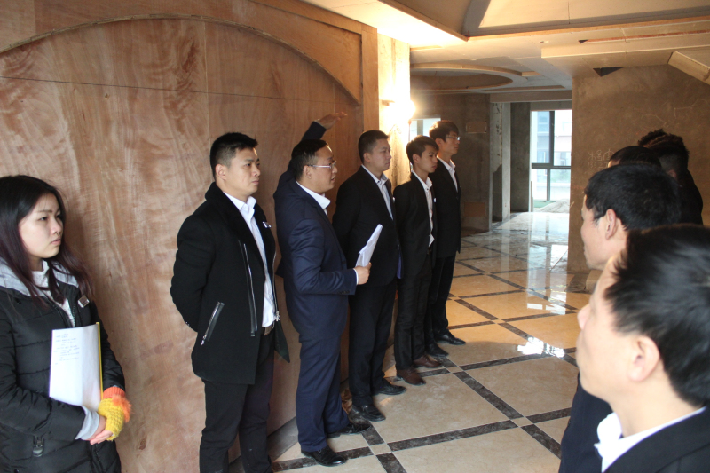 培訓當天氣溫較低,但項目經(jīng)理們依舊精神飽滿,整齊穿戴西服,井然有序的排成一列,展現(xiàn)出新思路裝飾施工管理隊伍團結向上的良好風貌。此次培訓由工程部文經(jīng)理親自主講,主要內容是以現(xiàn)場施工管理為主。他結合自己多年現(xiàn)場施工及管理經(jīng)驗,通過實際案例,從施工的各個環(huán)節(jié),包括防水工藝的規(guī)范標準、地磚鋪貼的排版要求、地面斜水的高低差值、吊頂施工細節(jié)等方面,深入淺出的為大家講解。在講解過程中,參訓人員頻頻舉手,或提出疑問,或分享心得,現(xiàn)在互動頻繁,共同營造了一個輕松、良好的培訓氛圍。培訓結束后,所有參訓人員還參觀了現(xiàn)場工地,大家結合現(xiàn)場案例,熱烈討論,分享彼此在施工過程中的經(jīng)驗和心得,從而推動了培訓成果快速落地。