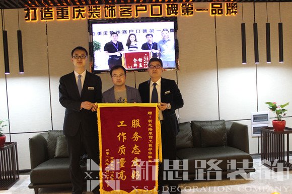 劉老師送來的這面錦旗,不僅僅是一面錦旗,是一種榮譽,是劉老師對新思路裝飾企業(yè)的肯定和認可,更是對我們的一種“鞭策”,促使我們更加用心地服務(wù)好我們的客戶,時刻兌現(xiàn)我們新思路裝飾企業(yè)的工作標準——客戶滿意是我們唯一的工作標準。在今后的工作中,新思路將一如既往地做好自己的工作,做出更多“精品工程”、“樣板工程”,來回報我們的客戶,。