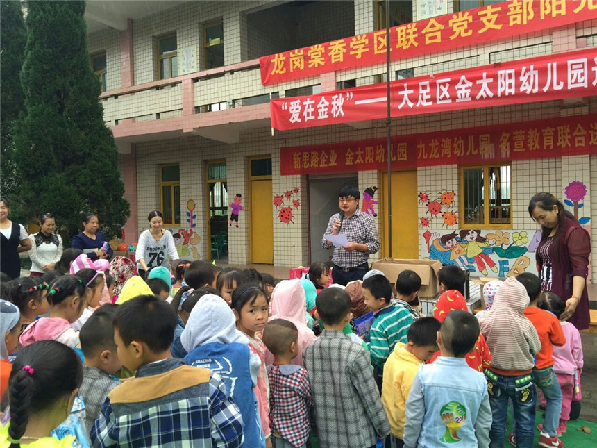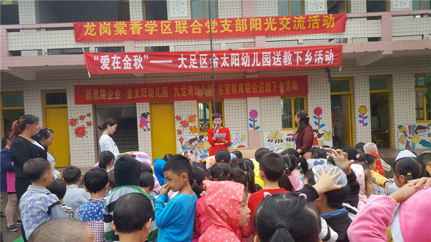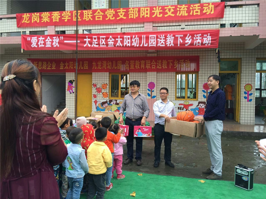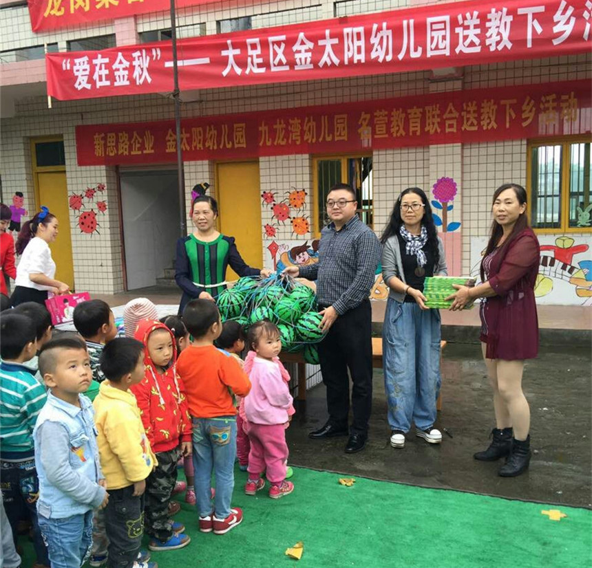 為了推進(jìn)城鄉(xiāng)幼教事業(yè)的均衡發(fā)展,充分發(fā)揮優(yōu)質(zhì)民辦幼兒園的引領(lǐng)、示范、輻射作用,本著“幫扶共進(jìn)、共同提高”的指導(dǎo)原則,共享優(yōu)質(zhì)教育資源,引領(lǐng)教師專業(yè)成長,全面提高學(xué)前教育保教質(zhì)量。新思路企業(yè)決定與金太陽幼兒園共同開展“送教下鄉(xiāng)捐贈(zèng)”活動(dòng)。