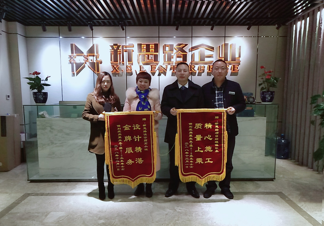 2018年12月7日下午,來(lái)自保利愛(ài)尚里的業(yè)主牟老師專程來(lái)到南坪總部將一面印有“設(shè)計(jì)精湛,金牌服務(wù)”的錦旗交給我們?cè)O(shè)計(jì)師石小婭手中,又將一面印有“精心施工,質(zhì)量上乘”的錦旗交到我們項(xiàng)目經(jīng)理譚欽術(shù)手中,以感謝新思路裝飾高品質(zhì)工藝和優(yōu)質(zhì)貼心的服務(wù)。