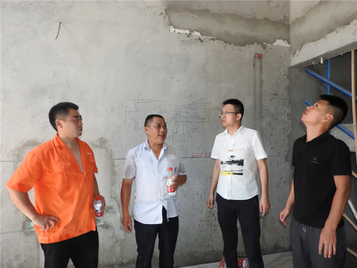 工程部經(jīng)理等人在送水的同時(shí)也與工人交流施工的問(wèn)題