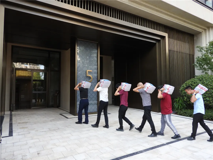 高溫酷暑,施工不易。一線工人的身體狀況與安全問(wèn)題,讓新思路裝飾的領(lǐng)導(dǎo)們時(shí)時(shí)牽掛著。為了防暑需求,新思路裝飾不僅先后采購(gòu)了十滴水、藿香正氣液等防暑降溫用品供工人使用,更考慮到夏季容易口渴,對(duì)飲用水的需求會(huì)比較大,于是在2020年8月27日這一天,由領(lǐng)導(dǎo)層牽頭,組成了高溫慰問(wèn)小組,奔赴各個(gè)小區(qū),為一線工人送去公司的關(guān)懷。