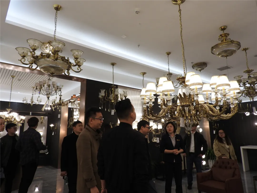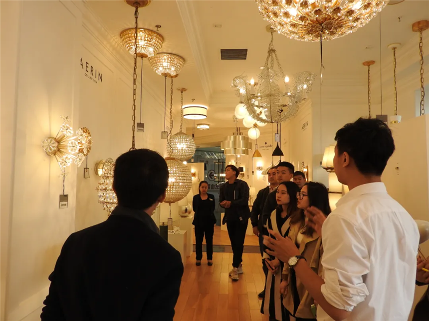 設(shè)計(jì)師們正在店員的帶領(lǐng)下參觀燈具