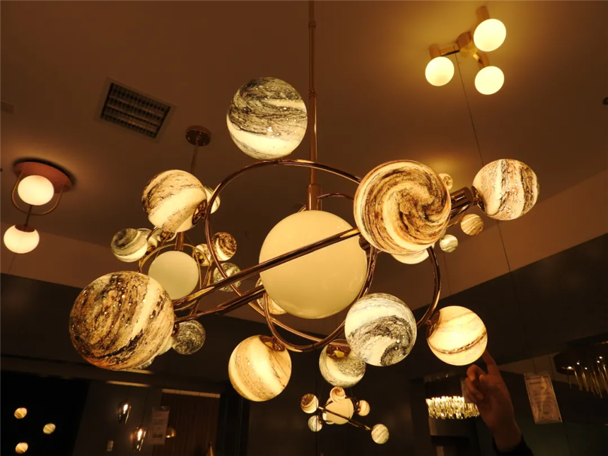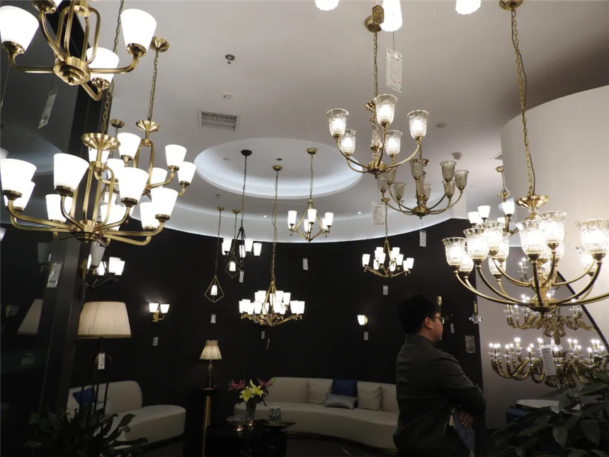 各種與歐式、美式風(fēng)格適配的燈具,奢華無比。最后一盞燈被店員稱為“鎮(zhèn)店之寶”,全手工黃銅打造,價(jià)值人民幣三十余萬