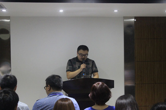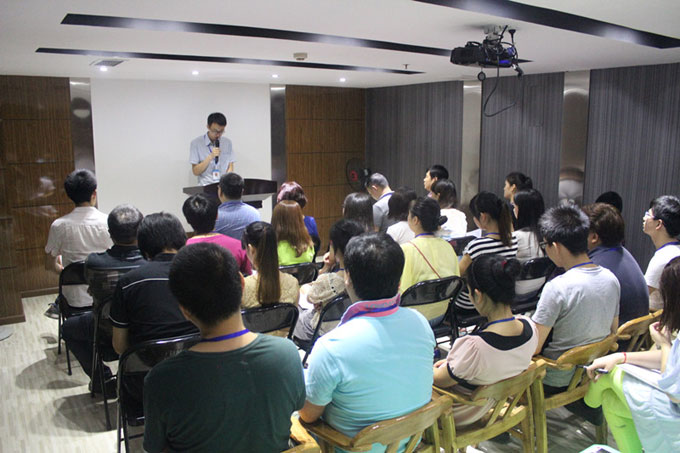 大家整齊而響亮地宣讀公司口號