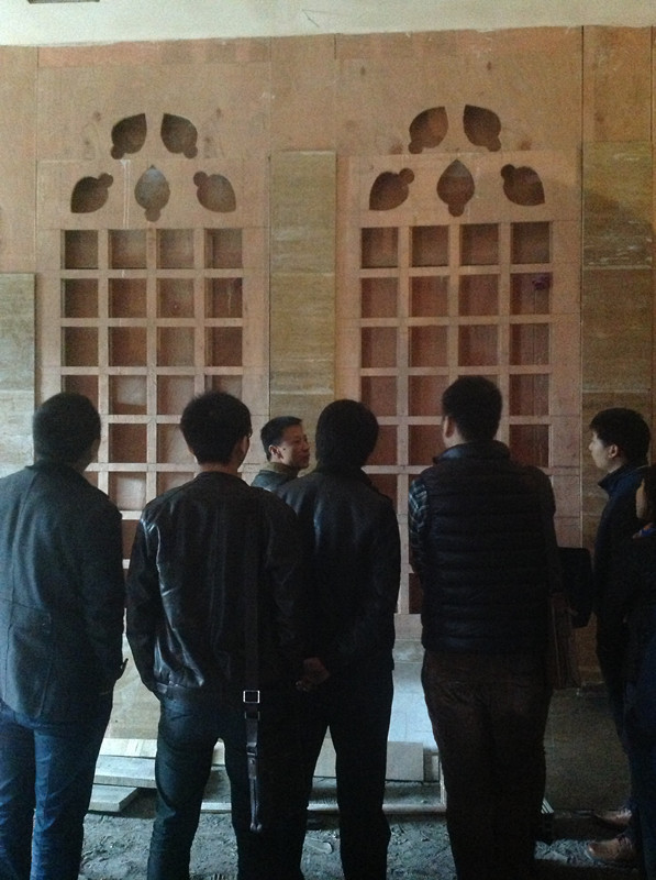 譚經(jīng)理正在講解木作工藝細節(jié)