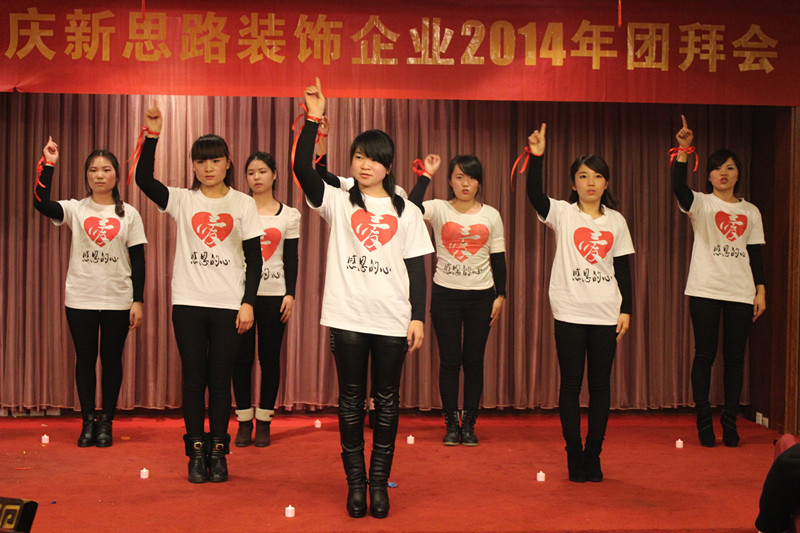 美好的時光總是過得很快,新思路裝飾“2014新春團(tuán)拜文藝晚會”在一片歡聲笑語中畫上了圓滿的句號,也迎接了新一年的到來。回顧過去,我們心存感激;展望未來,我們信心百倍。2014年,讓我們用踏實的步伐、激昂的斗志,迎接嚴(yán)峻的挑戰(zhàn),創(chuàng)造新的奇跡和輝煌!