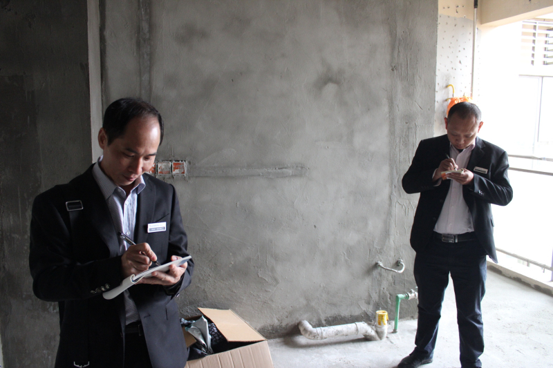 此次巡查的工地中,有剛進(jìn)場開工的,有處于水電階段的,也有即將完工交付的,基本保證了此次檢查能夠覆蓋各階段的工程內(nèi)容。“進(jìn)門首先檢查工地是否整潔,然后看安全保護(hù),接下來看施工日志和施工情況。”文經(jīng)理強(qiáng)調(diào)說。新思路裝飾注重每一個(gè)細(xì)節(jié),尤其是工地形象更是重中之重,進(jìn)門的第一件事就是確認(rèn)工地形象是否達(dá)到公司標(biāo)準(zhǔn)。在檢查過程中,從水電線路的走位,到木工的制作;從材料的堆放,到垃圾的處理,巡查人員均嚴(yán)格按照公司工地管理的相關(guān)標(biāo)準(zhǔn)進(jìn)行檢查,發(fā)現(xiàn)問題現(xiàn)場通知相關(guān)項(xiàng)目經(jīng)理限期整改到位,真正做到為客戶把好工地質(zhì)量關(guān)。