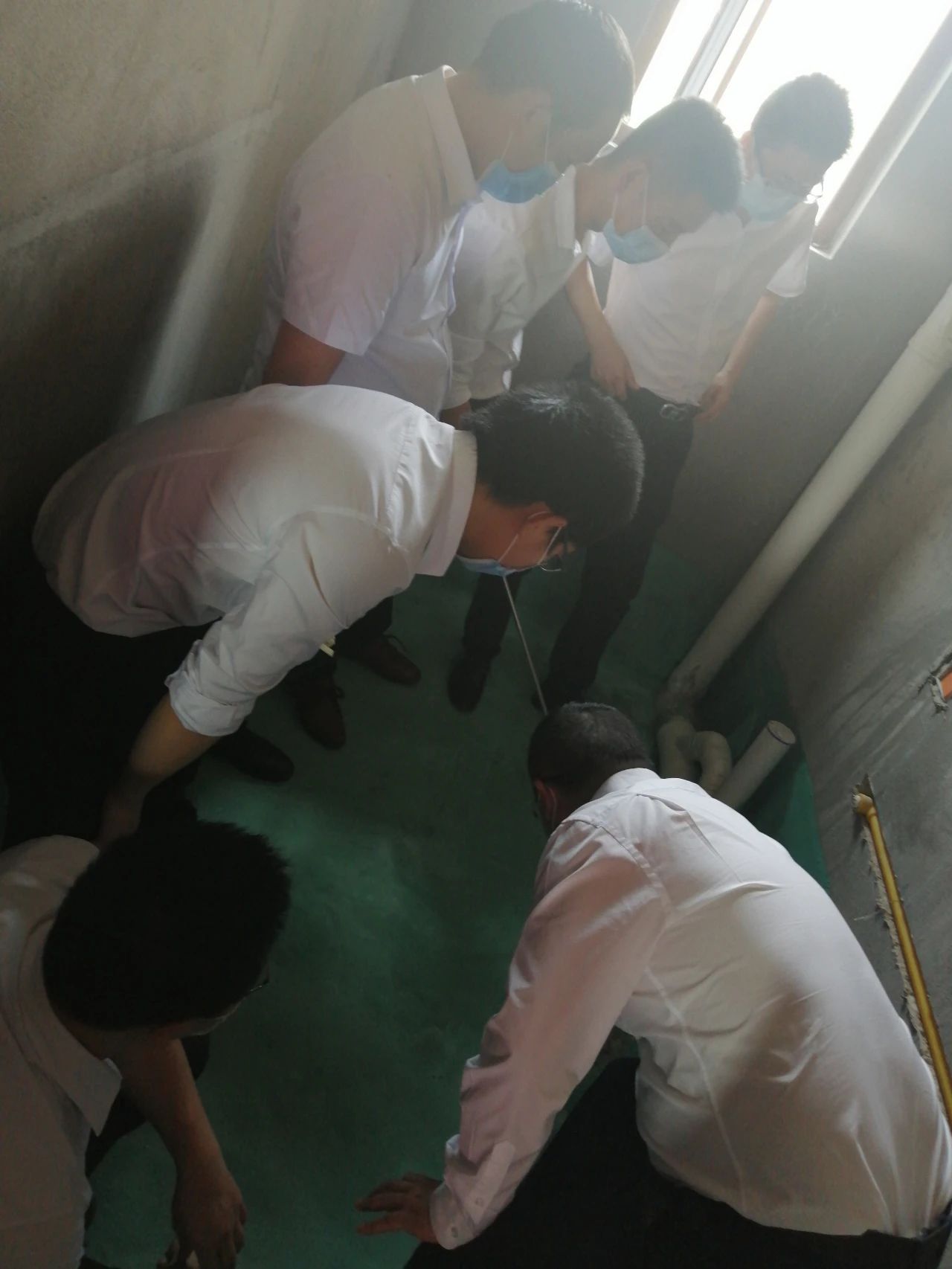 ▲巡查小組對(duì)防水工藝做認(rèn)真檢查