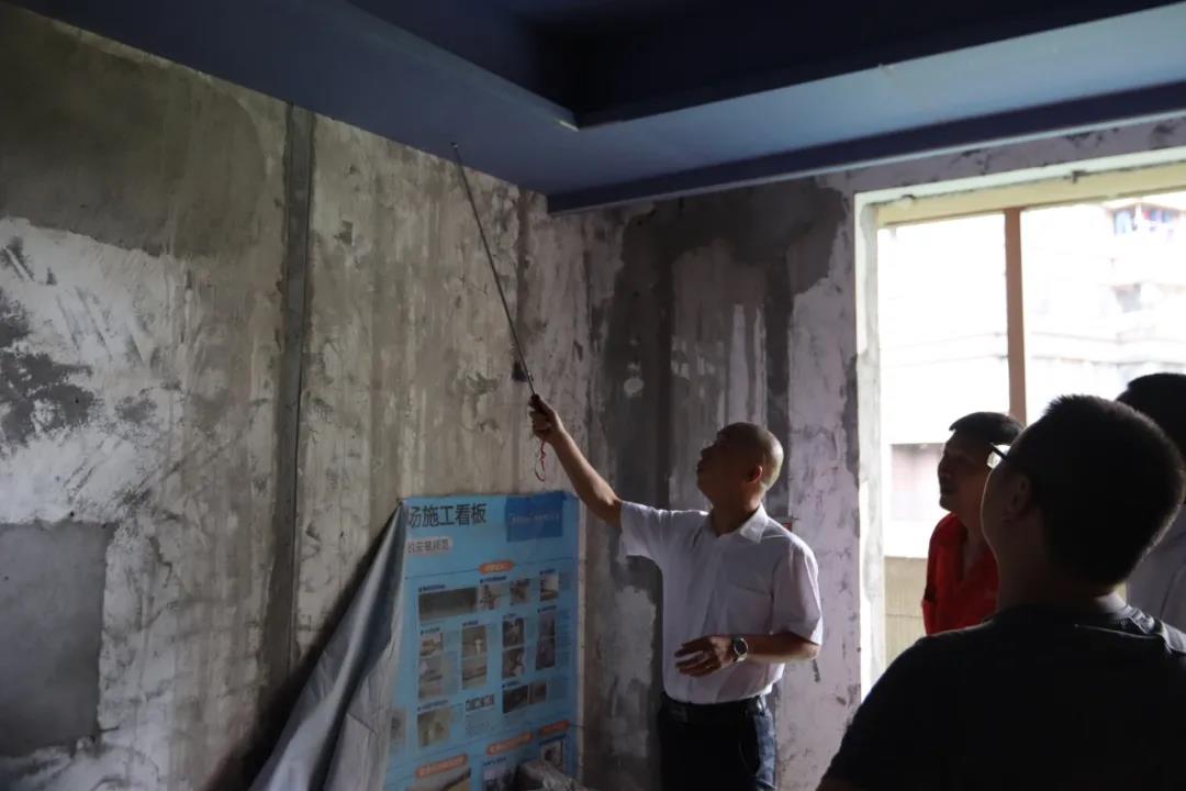 巡查小組到達(dá)的一個(gè)工地是龍湖舜山府,工程部的質(zhì)檢和項(xiàng)目經(jīng)理在此次巡查中對(duì)工程質(zhì)量和工藝進(jìn)行了細(xì)致的檢查。對(duì)水電工藝、墻面開槽等工藝細(xì)節(jié),新思路裝飾都有嚴(yán)格的要求,李經(jīng)理一邊檢查,一邊和質(zhì)檢、項(xiàng)目經(jīng)理等探討工藝問題。