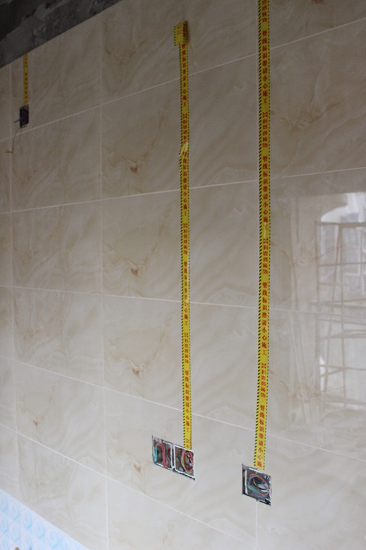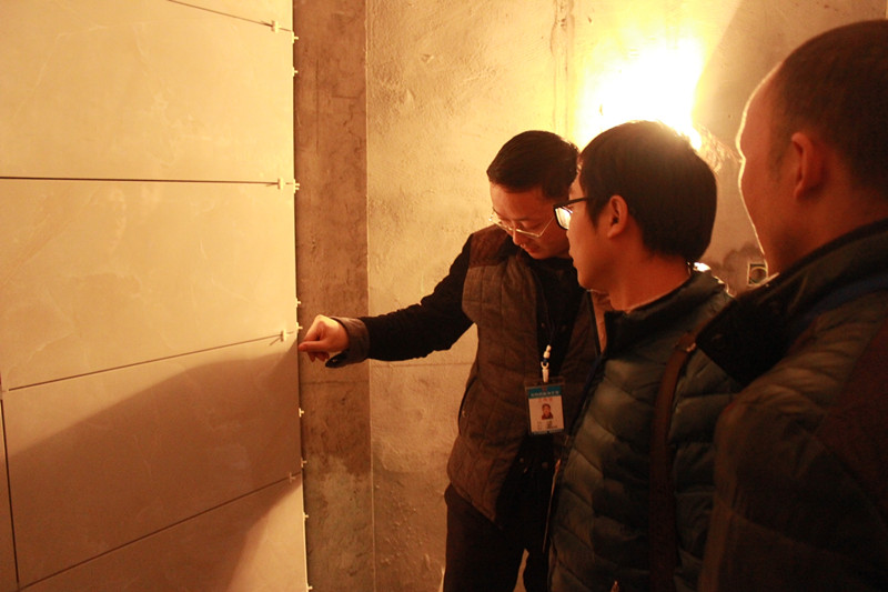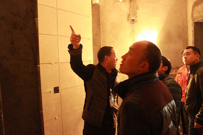 巡查小組正在仔細(xì)檢查墻面貼磚細(xì)節(jié)