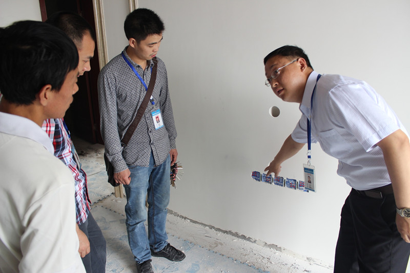 此次巡查嚴格遵循公司檢查制度和流程,檢查項目包括工程進度、安全防護、工程形象、工地衛(wèi)生、成品保護、工藝標準等近百余項國家標準。大如是否私自變動工程,是否按公司規(guī)定使用主材和輔材;細微如每一個線頭的安全保護,每一塊瓷磚之間的縫隙寬窄,均按公司標準嚴格檢查。現(xiàn)場發(fā)現(xiàn),現(xiàn)場指導,現(xiàn)場整改,將工程質量問題控制在發(fā)生階段。巡查小組事無巨細的檢查、對施工質量的嚴苛態(tài)度,讓在場的業(yè)主與施工工人都深刻體會到了新思路對于工程質量近乎偏執(zhí)的高要求。文經(jīng)理在檢查的同時,也現(xiàn)場對新進的項目經(jīng)理進行了指導和教學,不斷強調公司工程施工上的一些標準和要點,并把自己的工程管理經(jīng)驗分享給他們。