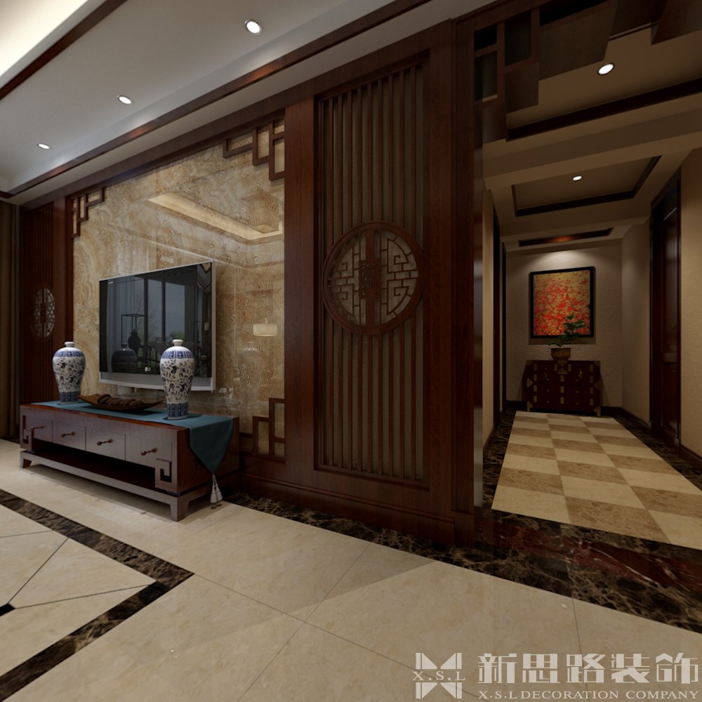 在中式裝潢設(shè)計(jì)中層次趕非常重要,比如:色彩從冷色到暖色,亮度從亮到暗,造型從大到小等都可以看成是富有層次的變化。層次變化可以取得極其豐富的視覺效果。