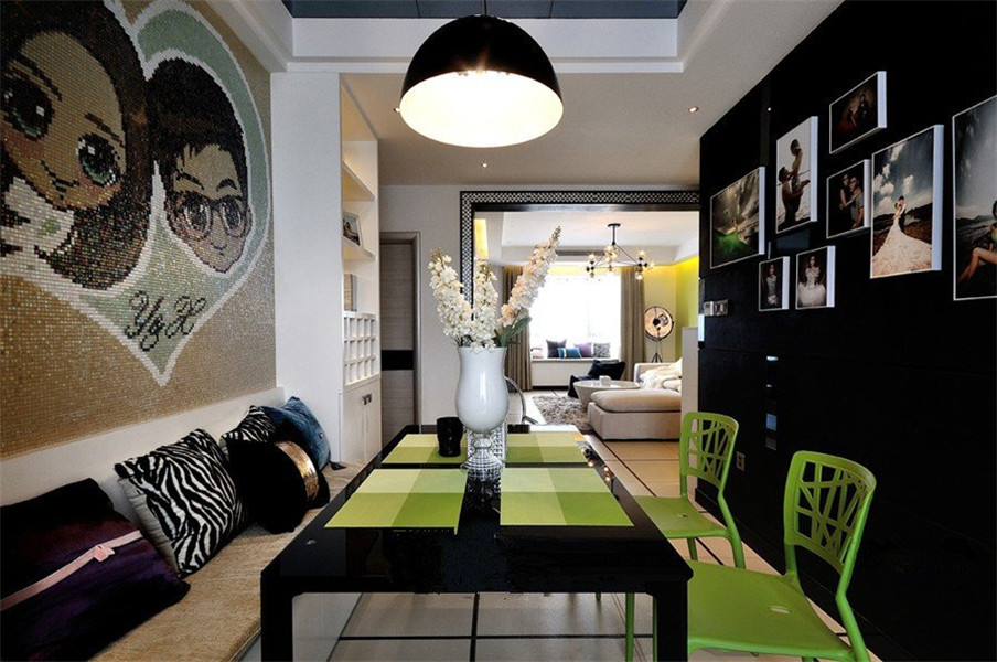 臥室也就是洞房,是新婚家庭的中心,也是新婚夫婦高度重視的地方。它的裝飾應體現(xiàn)出喜慶、溫馨、浪漫的氣息,紅色是傳統(tǒng)的中國式婚禮的主色調,因此中國人也比較喜歡用喜慶的紅色裝點新房。紅色的床上用品、紅色的窗簾等,結婚的當天,就靠這些裝飾來營造喜慶氣氛。窗簾可用外薄內厚的兩層,既遮擋視線、保持室溫,又不影響白天休息,窗簾、床罩、沙發(fā)罩等織物的圖案、顏色的選擇要協(xié)調。再輔以適當?shù)膸в袀€性特點的裝飾物,使室內充滿喜慶浪漫的氣息,也可體現(xiàn)主人對美好生活的追求。