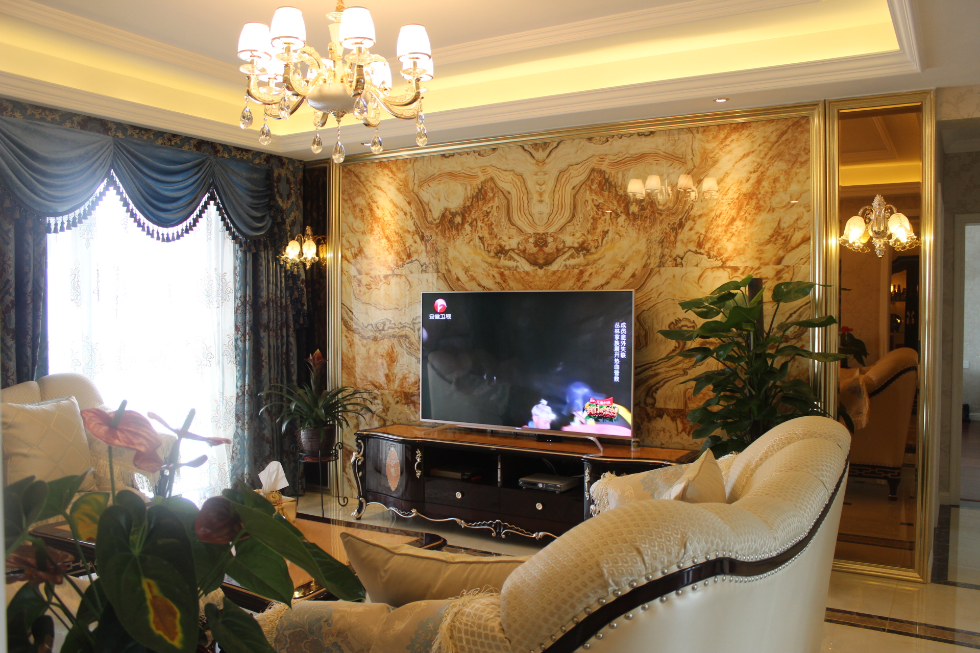 客廳中比較重要的落地窗簾,用料和用色應(yīng)與沙發(fā)的形狀和用色相協(xié)調(diào)。有的居室客廳沙發(fā)區(qū)鋪放工藝地毯,這是相對(duì)于客廳滿貼大理石或玻化石而搭配的。木地板上再鋪工藝地毯,效果就差了點(diǎn)。對(duì)于地毯的花形色彩,其色相大致是與窗簾、沙發(fā)、桌布相協(xié)調(diào),否則會(huì)給人一種雜亂的感覺。客廳擺放的立櫥、吊燈、臺(tái)燈要把握好尺度范圍。書畫、雕塑、書籍、陶藝品、布藝、盆景、古玩之類的擺設(shè)物,可以有不同的變化,但數(shù)量不宜過多,在位置角度上要比例得體。